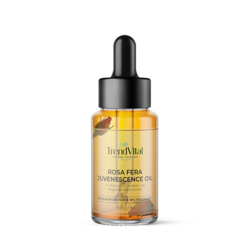 Die Mischung aus hochwertigen Ölen wie Macadamia Ternifolia Seed Oil und Simmondsia Chinensis Seed Oil verspricht intensive Feuchtigkeit, Glättung und Verbesserung des Hautbildes. Besonders interessant ist das Backuchiol, ein natürlicher Retinol-Ersatz, der die Hautregeneration fördert und für einen ebenmäßigen Teint sorgt. Unser Rosa Fera Juvenescence Oil ist 100% vegan. Keine Tierversuche. Glasflasche mit 30 ml Inhalt.