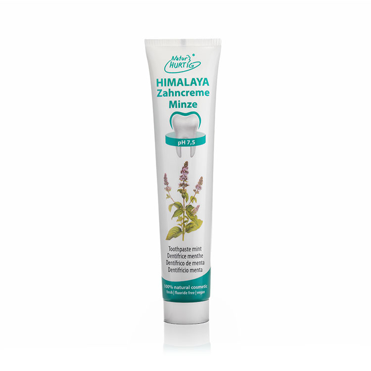Die Kräuterzahncreme von Natur Hurtig reinigt die Zähne und kräftigt das Zahnfleisch durch eine Kombination aus Himalaja-Kristallsalz und sieben verschiedenen Heilpflanzen. Mineralische Putzkörper aus Kreide und Salzkristallen entfernen Zahnbelege schonend. Himalaja-Kristallsalz ist außerordentlich reich an Mineralien wie Calcium, Magnesium, Natrium und Kalium. Salz ist ein traditionell bewährtes Mittel in der Mund- und Zahnpflege. Es wirkt antibakteriell, durchblutungsfördernd, regt den natürlichen Speichelfluss an, unterstützt die Selbstreinigung und neutralisiert schädliche Säuren. Tube mit 75 Milliliter.